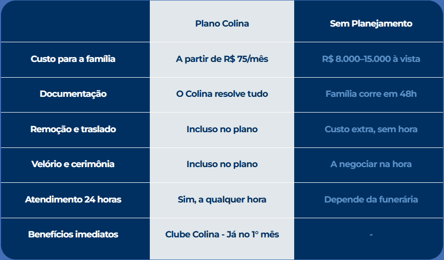 O Plano Colina protege o futuro da sua família e gera valor para você já hoje, em qualquer plano contratado conosco!
